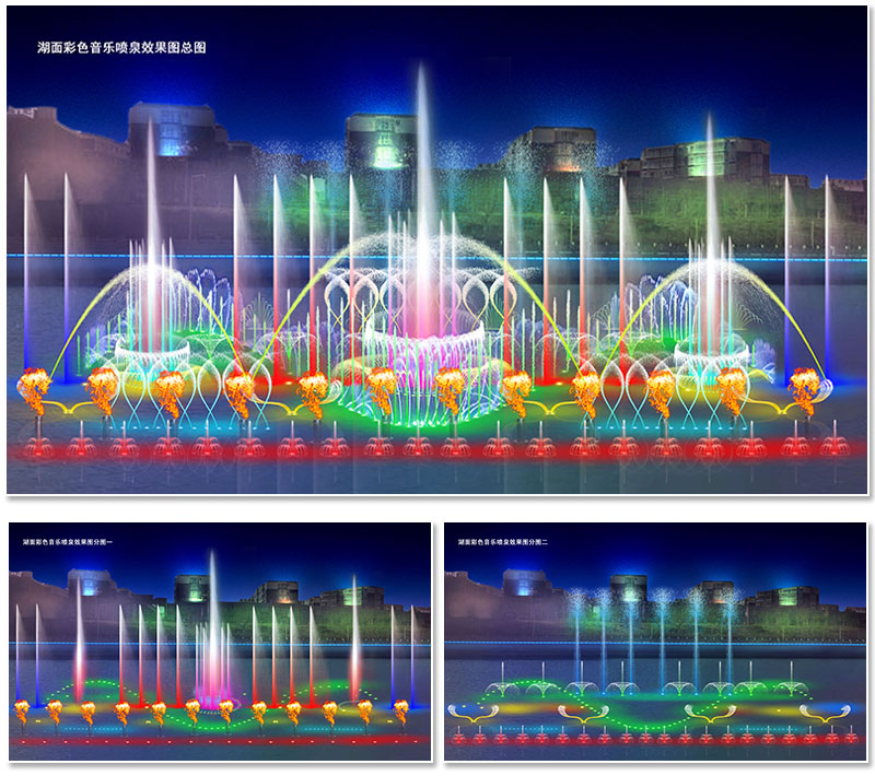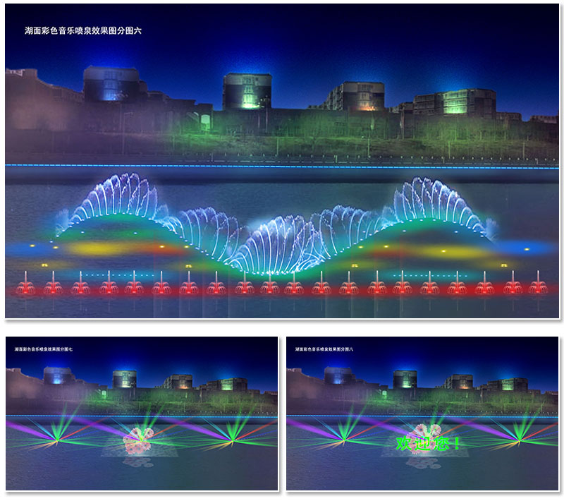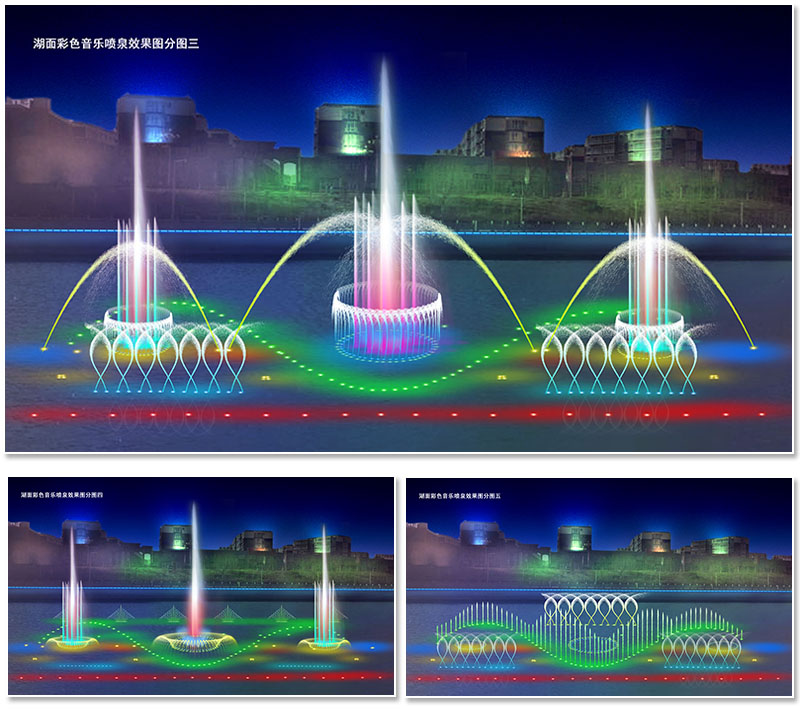 湖面彩色音乐喷泉效果图
